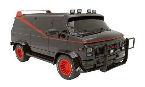 Der Observations-Van des A-Teams als Modellauto. Maßstab: 1:24, Größe: ca. 16cm x 10cm, Hersteller: HITARI, Mit Licht- und Soundeffekten. Der Van stammt aus der TV-Serie von 1983.
