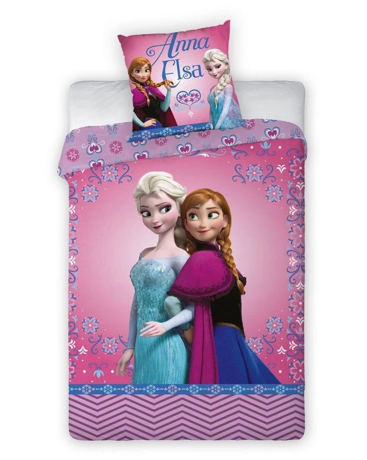 Hochwertige Bettwäsche zum Kinofilm Die Eiskönigin – Völlig unverfroren mit dem Motiv von Anna & Elsa.