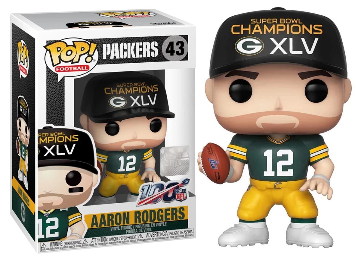 Exklusive Funko POP! NFL Super Bowl Champions Figur von Aaron Rodgers bei den Green Bay Packers.