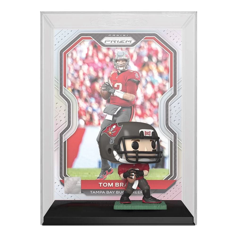 Funko POP! Figur mit stilisierter Trading Card von NFL Spieler Tom Brady bei den Tampa Bay Buccaneers.