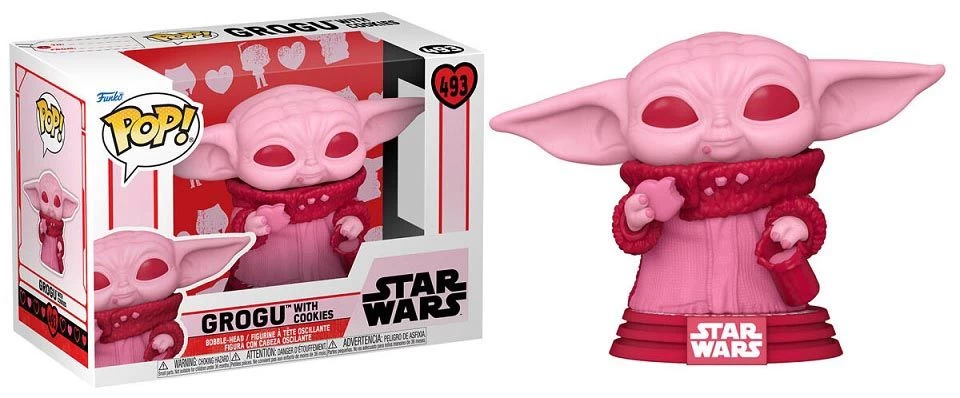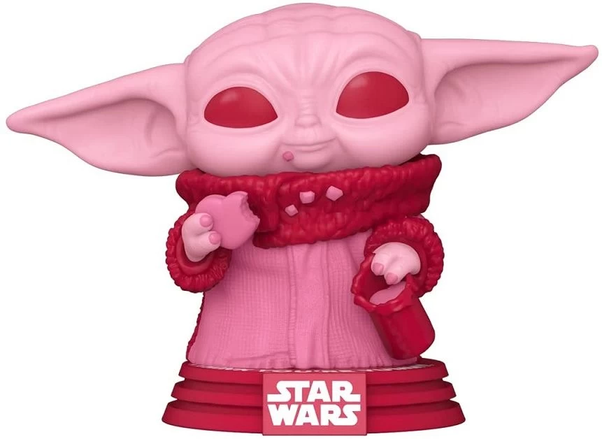 Funko POP! Figur von Grogu mit Keks in Herzform aus der Star Wars Valentines Serie.