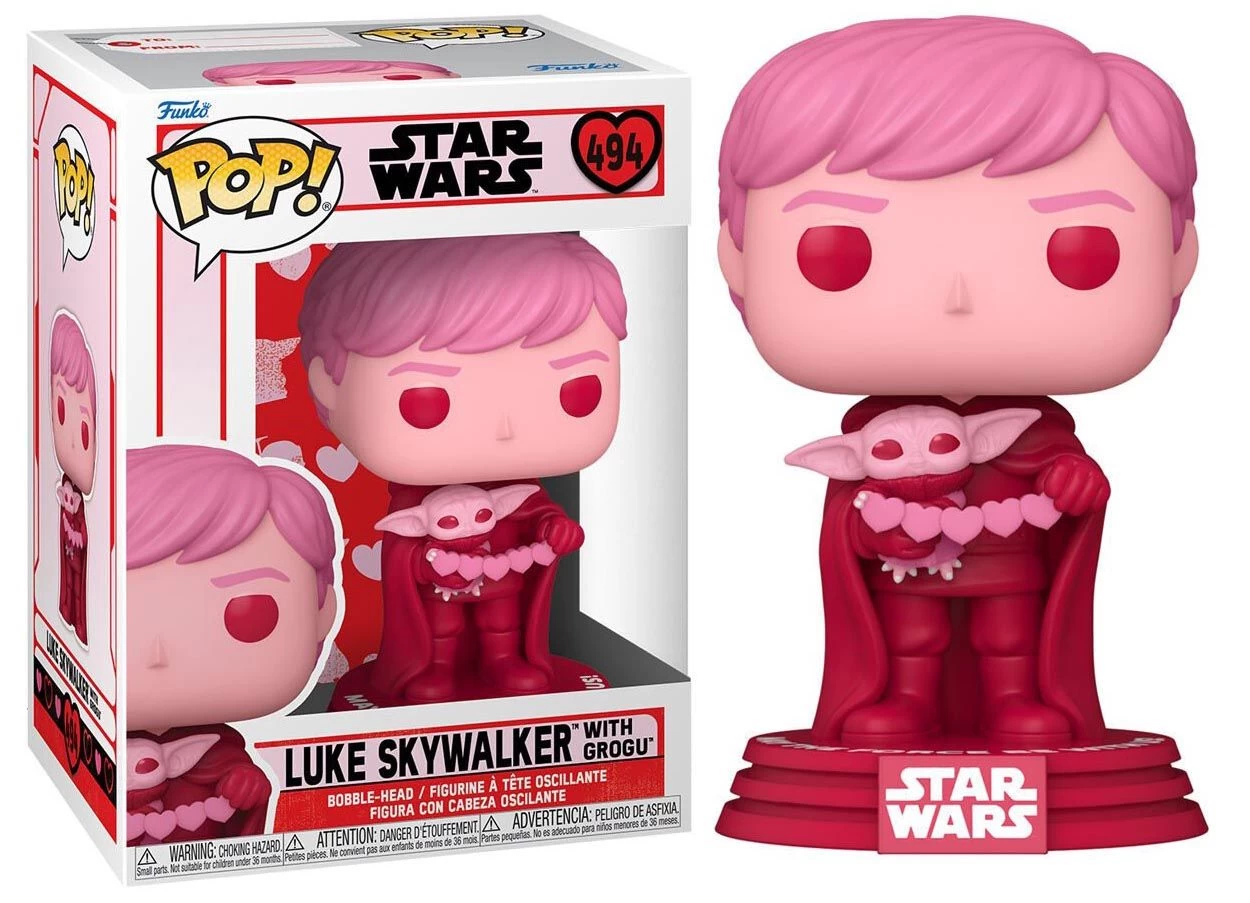Funko POP! Figur von Luke Skywalker & Grogu aus der Star Wars Valentines Serie.