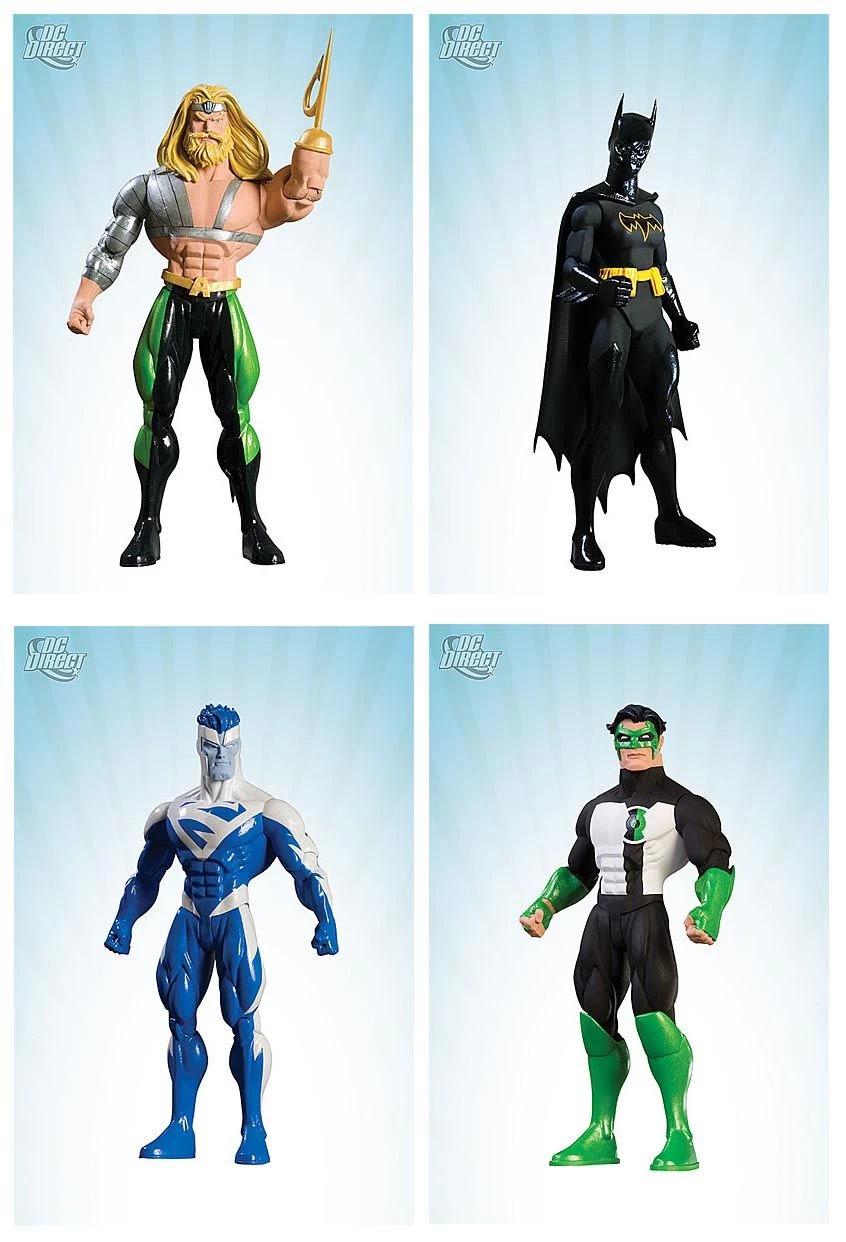 4er Set mit voll beweglichen Actionfiguren der DC Direct Serie 2 – Justice League of America Classified Classic. Aquaman, Batgirl, Blue Superman und Green Lantern.