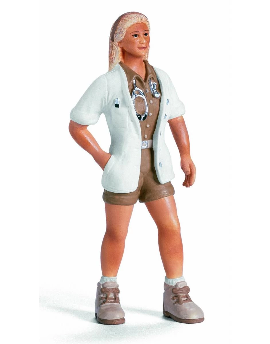 Die Tierärztin eilt mit umgehängtem Stethoskop zu Hilfe. Die Tierärztin hilft Tieren, wieder gesund zu werden, und ist damit für die Pflegestation unheimlich wichtig. Sie muss viele verschiedene Krankheiten und Verletzungen heilen können. Deine Schleich Tierärztin muss bei ihrer Arbeit sehr sorgfältig sein und sie wird Generationen von Schleich Tieren mit aller Hingabe pflegen.