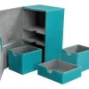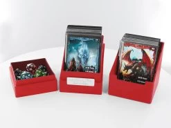 In diese robuste Kartenbox mit Würfelfach passen bis zu 100 Karten der Standardgröße in zwei Hüllen (double-sleeved) oder über 120 Karten in einer Hülle.