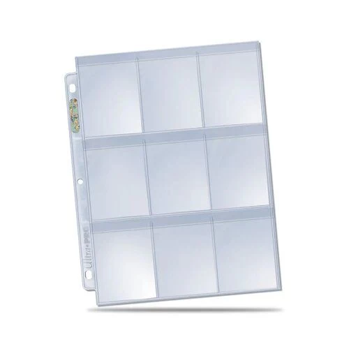 Als Teil der Aufbewahrungsseiten der Flaggschiff-Linie von Ultra PRO sind diese Seiten der Platinum-Serie mit 9 Fächern die erste Wahl für Sammelkarten, Postkarten, Fotos, Künstler-Skizzenkarten, Ticket-Stubs, Coupons und vieles mehr. Jede Seite trägt das Hologramm-Qualitäts- und Echtheitssiegel von Ultra PRO auf dem Buchrücken. Diese Seiten sind 3-fach gelocht und so bemessen, dass sie in Ultra PROs 3-Ring-Alben in Standardgröße passen.