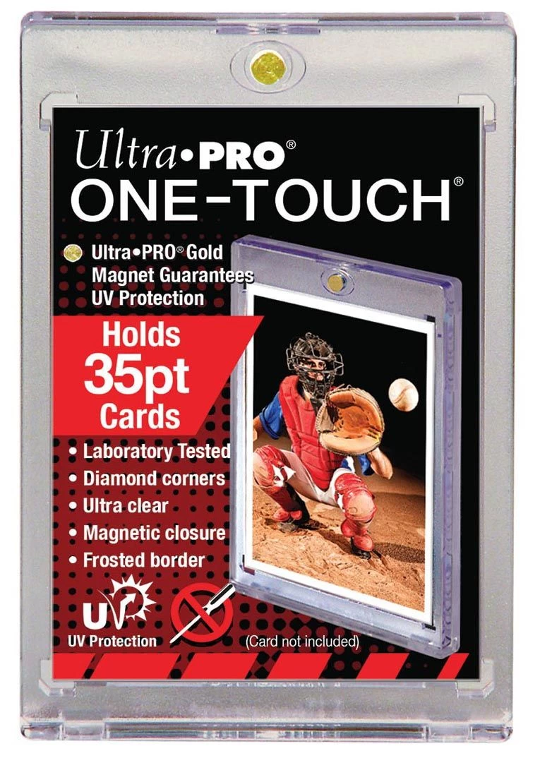 Kartenhalter für einzelne Sammelkarten der Stärke 35pt. Magnetischer Verschluss, Verstärkte Ecken.