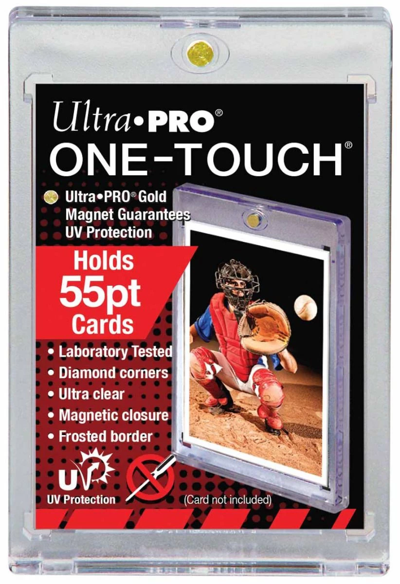 Kartenhalter für einzelne Sammelkarten der Stärke 55pt. Magnetischer Verschluss, Verstärkte Ecken, Kristallklar.