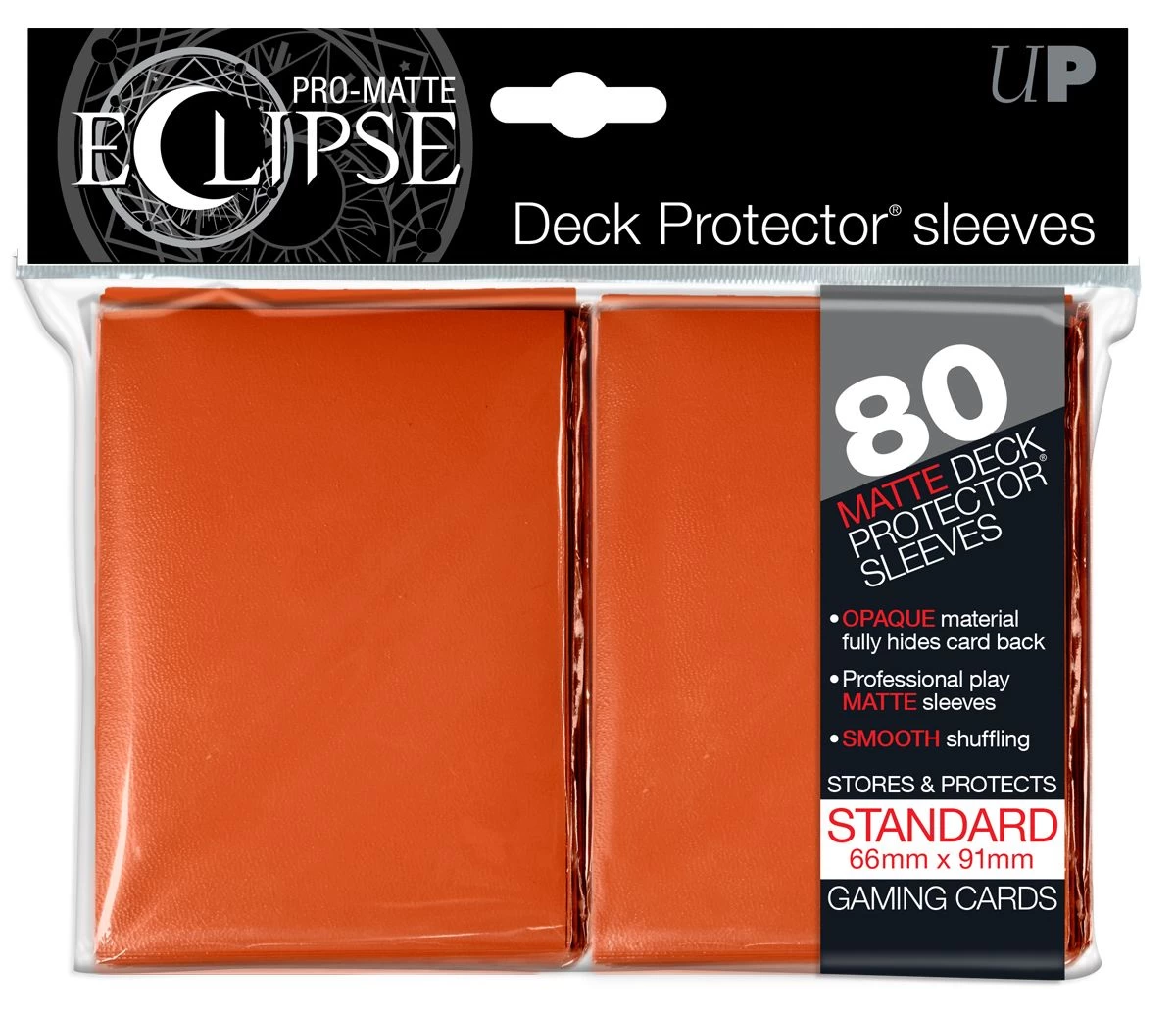 Pack mit 80 Stück Pro-Matte Eclipse Deck Protector Sleeves in der Standard-Größe (66mm x 91mm). Farbe: Orange